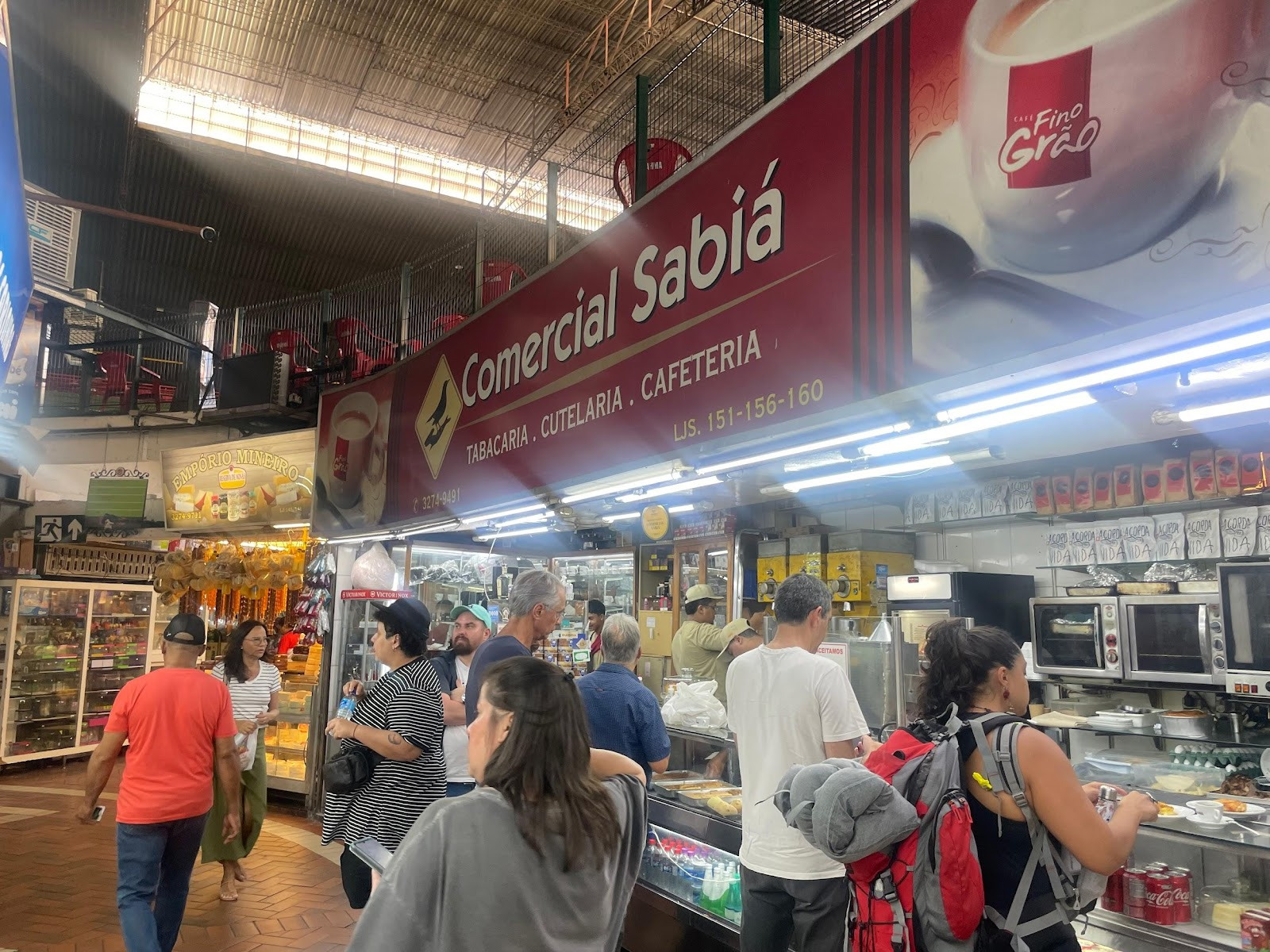 Localizado no Mercado Central de Belo Horizonte, o Comercial Sabiá atua desde 1991 e segue a tradição mineira de servir cafezinho e pão de queijo no balcão dos estabelecimentos. Na placa, “tabacaria”, “cutelaria” e “cafeteria” dividem o mesmo espaço. Tudo começou com um jovem mineiro chamado Marco Aurélio que, frustrado após tentar a vida no Paraná, retorna a Minas para ajudar o tio na tabacaria até então nomeada “Ideal”. O café acompanhava o cigarro e, com o tempo, o pão de queijo veio para acompanhar o café.