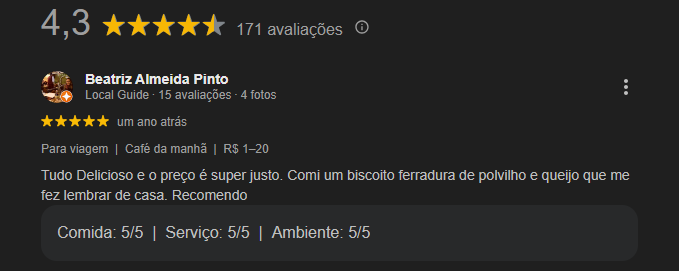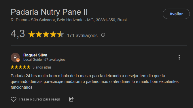 Antes de sua chegada, as avaliações da padaria na plataforma Google indicavam problemas de atendimento, demora e pouca variedade. Hoje, o espaço soma nota 4,3 na plataforma, reflexo de mudanças na gestão e na relação com os clientes.