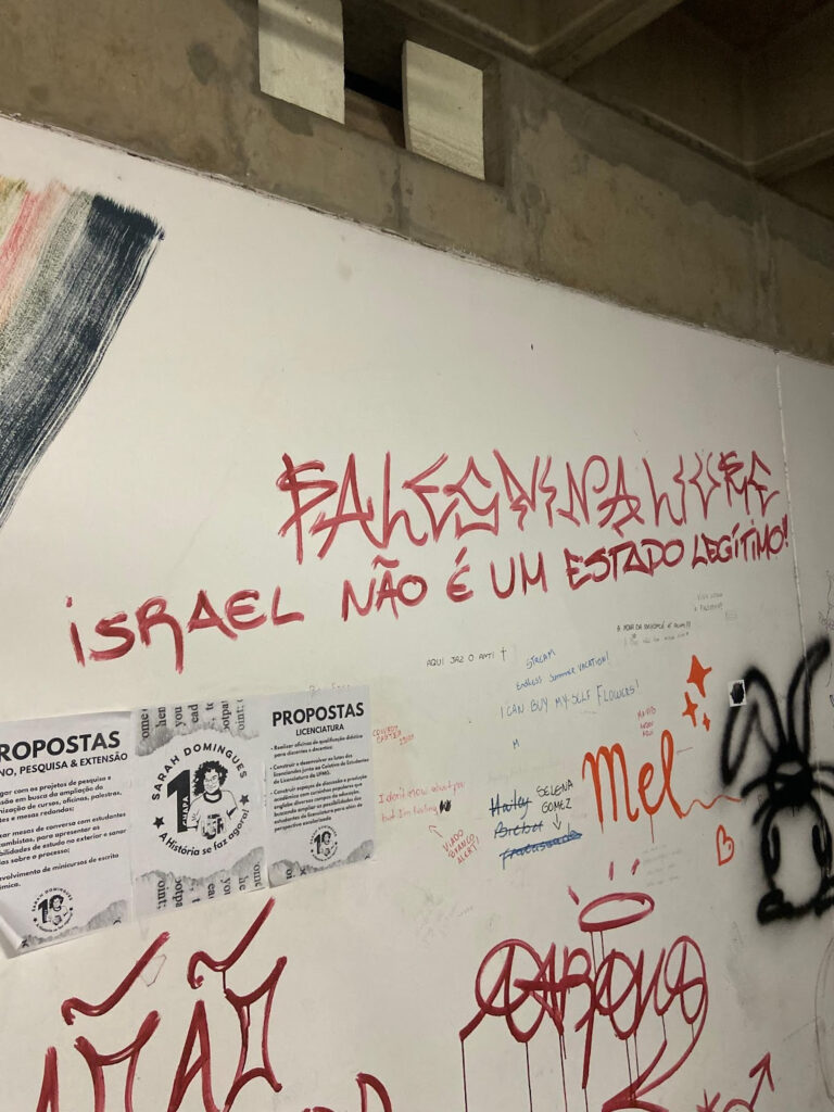 Em Belo Horizonte, como em boa parte de qualquer centro urbano, basta um olhar ao redor para perceber que as ruas, muros e viadutos operam como formas de representação artística, política e moldam o viver na cidade. Mas em meio à densa paisagem urbana e política, a Faculdade de Filosofia e Ciências Humanas (FAFICH) da Universidade Federal de Minas Gerais (UFMG) eleva esse diálogo a outro patamar no Campus Pampulha. As paredes do prédio chamado de “o mais político” da UFMG funcionam para além dos limites estruturais: elas operam como o próprio arquivo vivo da história do ambiente e refletem as lutas que definem a alma da faculdade.