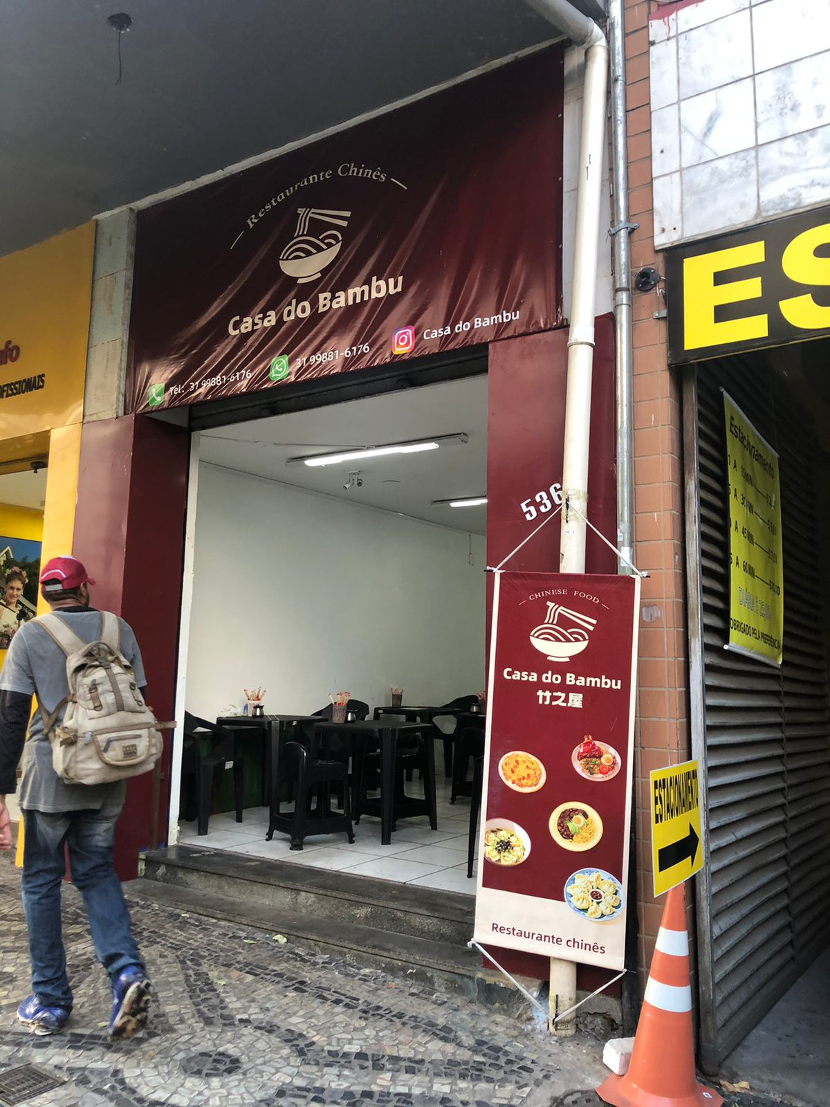 Outro ponto visitado pela reportagem foi o restaurante Casa do Bambu, aberto em março de 2025, também na região do chamado comércio popular e a cerca de 250 metros do shopping Oiapoque. A proprietária, Jia Li, vive no Brasil há dois anos e administra o local ao lado de um colega, responsável pela cozinha. Ela fala pouco português, por isso, não quis se estender muito ao falar sobre a história do restaurante. Mas ela conta que decidiu abrir o estabelecimento por necessidade de trabalho, aproveitando o fato de que parte de sua família já atuava no comércio no centro de BH há cerca de uma década.